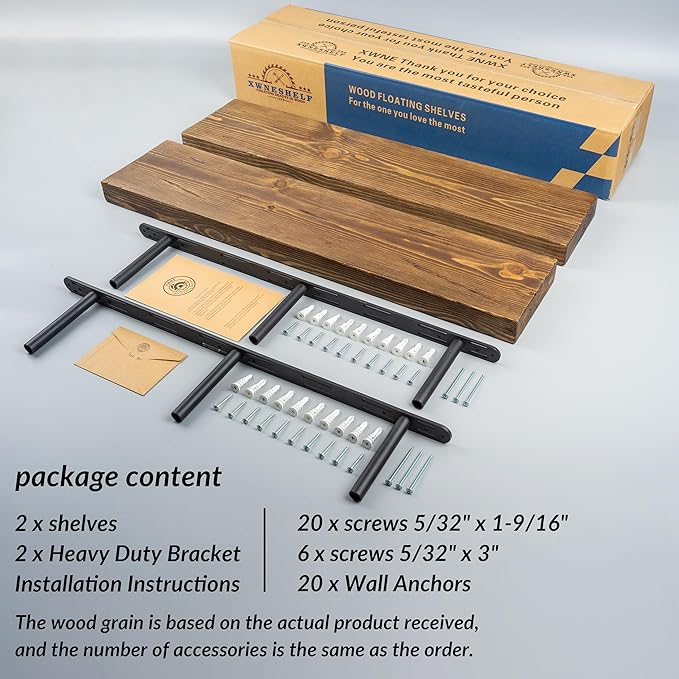 - Easy Installation: Installing our floating shelf is a breeze. With user-friendly instructions and included mounting hardware, you'll have it securely hung on your wall in no time, adding both charm and organization to your space.