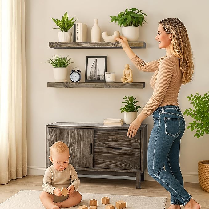 - Seamless Integration: The neutral finish of our floating shelf seamlessly integrates with a wide array of design aesthetics, making it an ideal addition to any home. Enhance your space with this functional piece that combines storage and style effortlessly.