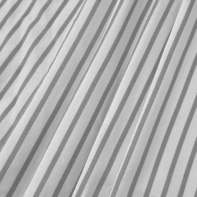 Awellife Farmhouse Beige Shower Curtain Button Linen Textured Woven Fabric,Pleated Grey Stripe,Country Style,72" W x 84" L