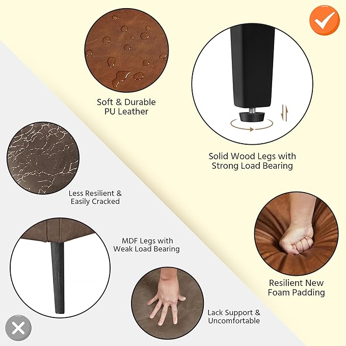 - 【Selected Materials】Rested on four robust rubberwood legs, this elegant side chair embraces a CARB-compliant engineered wood frame, sumptuous faux leather upholstery, durable metal sinuous springs and resilient foam fill, offering a reliable and soft sitting experience. It can support up to 136 kg / 300 lb.