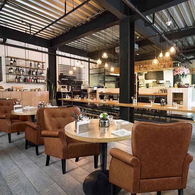 - 【Sturdy & Durable】Made of exquisite material, our upholstered accent chair is firm and durable. The surface is mainly made of PU leather that is water-resistant and breathable. The rubberwood legs, complete with adjustable foot pads, offer great sturdiness and prevent sliding or shaking. It has a weight capacity of up to 136 kg/300 lb.