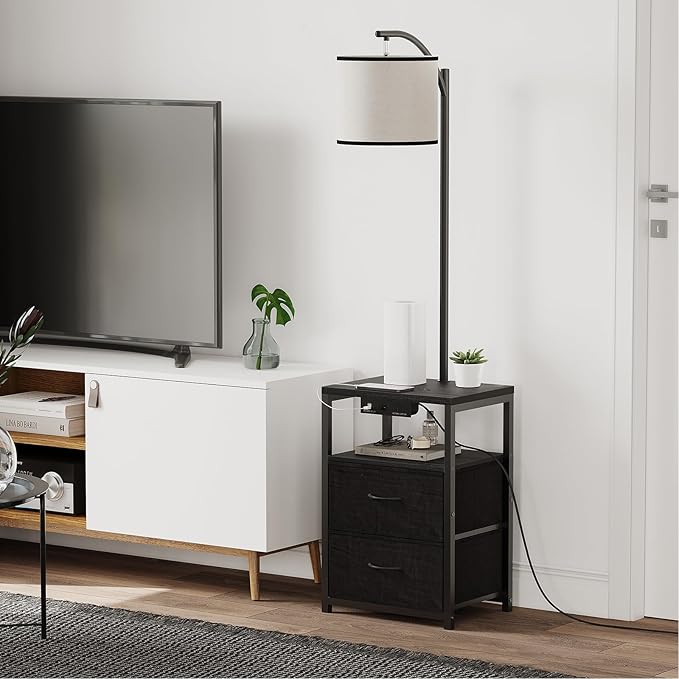 SUNMORY Floor Lamp with Table & 2 Drawers, Lamp with USB Port and Outlet, Lamps for Nightstand with 3 Color Temperature Led Bulb Included, Floor Lamps for Living Room, Bedroom and Home Office, Black
