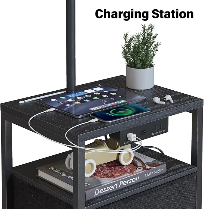 - Three-color temperature bulb: This end tables with usb ports and outlets attached contains a 3 color temperature E26 bulb (9W/800Lum). Compared with halogen lamps, it saves more than 85% of electricity bills. When the color temperature is adjusted to warm yellow light, the light is softer to protect your eyes. Adjusting to yellowish light or white daylight will be brighter and can be used as ambient lighting.