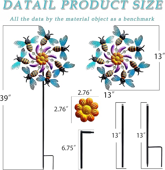- 💎【Wind Spinners For Yard And Garden】Metal windmill with Vivid bee details which helps to relax your mood and add vitality to your daily life, and add a touch of ambience to your patio lawn or garden.