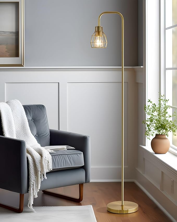 - Gold Floor Lamp: Our classic standing lamp is made of high-quality metal and has an elegant appearance.The light weight cages are durable and never bend.The pole is straight and perfectly connected to the base without swinging.The base is Heavy enough, Safe for your baby and pets.The base to provide a good stability from falling that can make sure safety and stable even on the carpet
