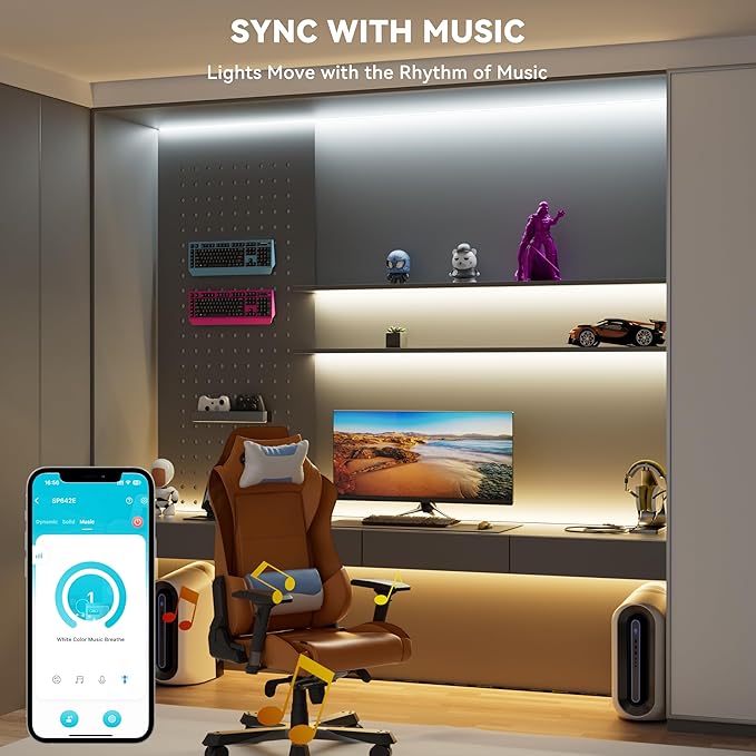 - 【Multifunctional】Support RF remote control, smartphone APP control and one-button switch of the control box. You can use the APP to adjust the brightness/color temperature of the light strip at will, and even set the timing mode. The controller/remote control supports one-to-many control (please read the user manual for details). The memory function allows the strip light to retain its last settings when you turn on your light!