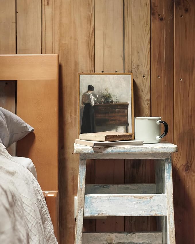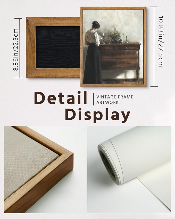 - VINTAGE ARTWORK FOR WALLS: The painting portrays an intimate scene of an interior, where the artist's wife stands gracefully at a chest of drawers, engrossed in a moment of reading, creating a sense of tranquility and contemplation. With their timeless appeal, these vintage wall art add an elegant and nostalgic touch to any space, making them a perfect choice for art enthusiasts and classical painting lovers alike.