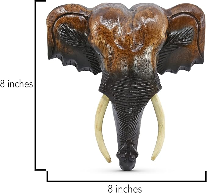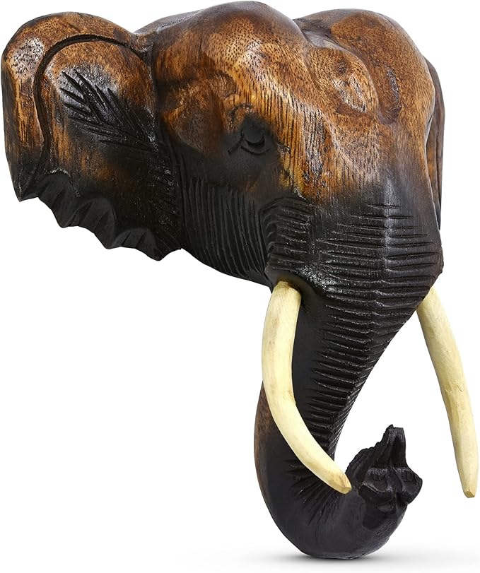 AeraVida Powerful Thai Elephant Head Trophy Mount Sculpture Hand Carved Wood Wall Art | Large Elephant Head Statue for Home Decor (Style2)