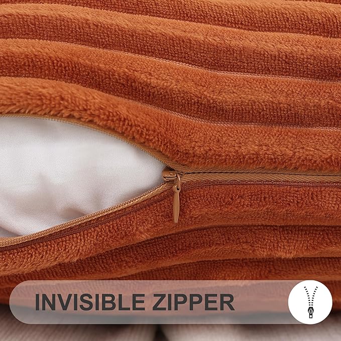 Simmore Decorative Fall Throw Pillow Covers 20x20 Set of 2, Soft Natural Plush Flannel Double-Sided Fluffy Couch Pillow Covers for Sofa Living Room, Rust