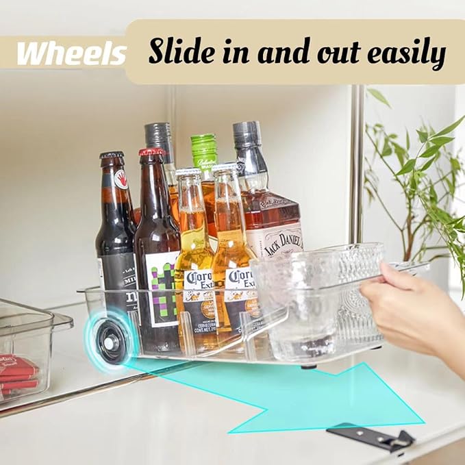 - Original Design Silicone Wheels :The wheels are made of silicone instead of hard plastic and will roll well on the glass shelf; Large(7.9''wide), smooth-spinning wheels with soft-grip surface roll the refrigerator organizers in and out while protecting cabinet floors under the sink