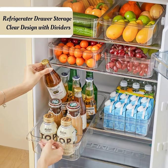 Attelite RollOut Refrigerator Drawer Organizer and Storage Clear Design with Dividers, Fridge Organizer on Wheels, Upgrade Thick Plastic Pantry Storage Bins, Kitchen Organization 2 Set
