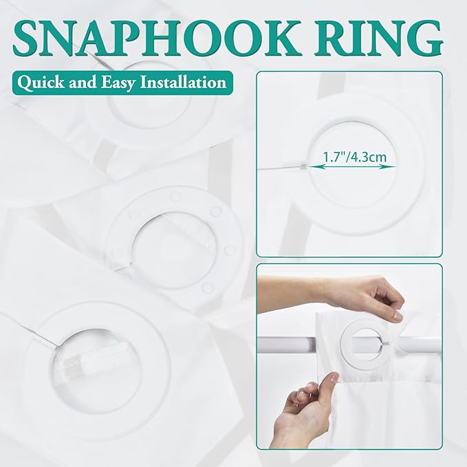 - NO Hook Design: set of shower curtain & snap on/off replaceable liner: no hooks needed design with built-in rings for easy on and off. snap-in waterproof fabric liner is removable when replacing