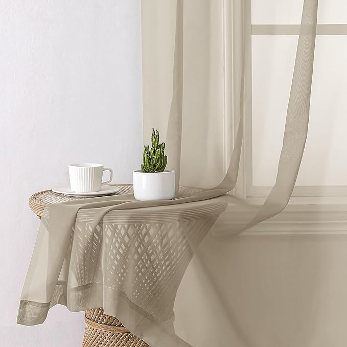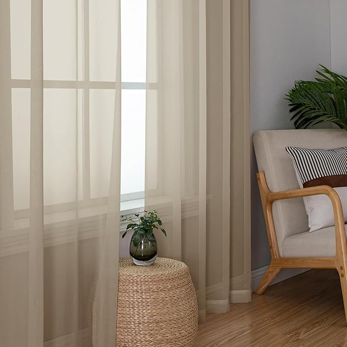 - Premium Semi Sheer Curtains: sheer taupe curtains are with high twist yarn and unique fluffy weave. which is airy breathable and very pleasant to the touch, solid sheer voile panels smartly invite sunlight to come through. It will add to the aesthetic and elegant value of your room