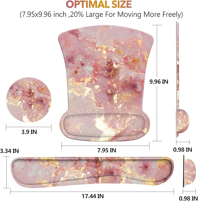 AIMSA Mouse Pad Wrist Support Set Keyboard Wrist Rest, Ergonomic Memory Foam Non-Slip Base Easy Typing Pain Relieve for Computer Laptop Home Office, Pink Gilt Marble