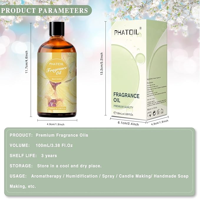 PHATOIL 3.38FL.OZ Black Orchid Fragrance Oils for Aromatherapy, Essential Oils for Diffusers for Home, Perfect for Diffuser, DIY Candle and Soap Making, DIY Scented Products - 100ml