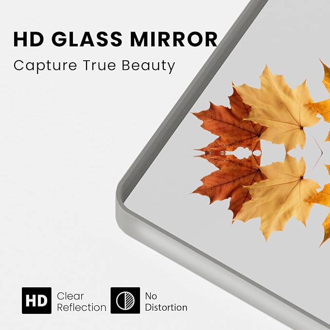 - Shatterproof Tempered Glass: The wall-mounted bathroom mirror features 21MM tempered glass with shatterproof film, which is shatter-proof, burst-proof, and ensures your safety even in case of breakage
