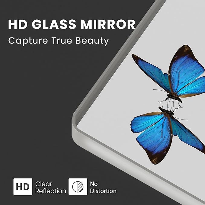 - Shatterproof Tempered Glass: The wall-mounted bathroom mirror features 19MM tempered glass with shatterproof film, which is shatter-proof, burst-proof, and ensures your safety even in case of breakage