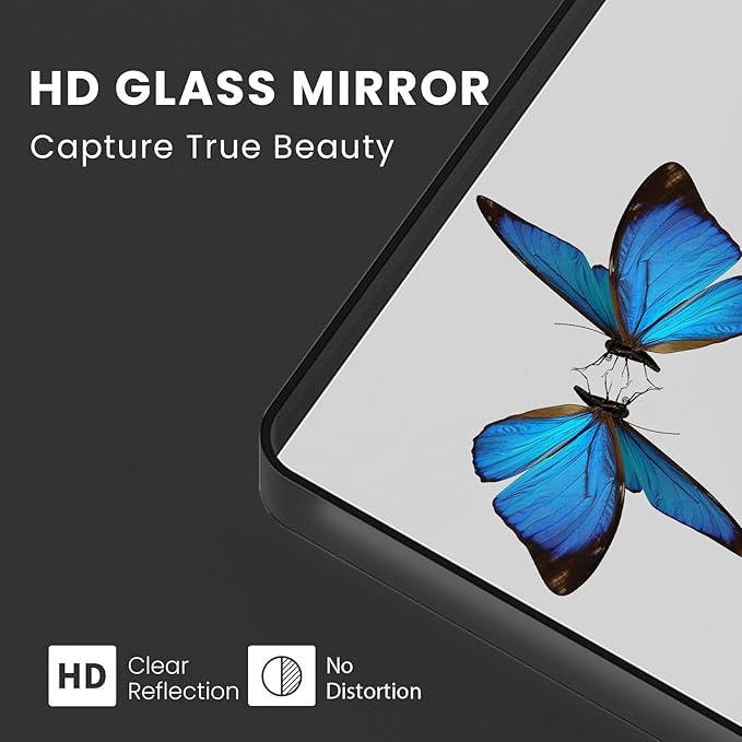 - Shatterproof Tempered Glass: The wall-mounted bathroom mirror features 20MM tempered glass with shatterproof film, which is shatter-proof, burst-proof, and ensures your safety even in case of breakage