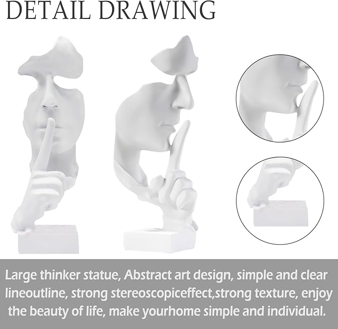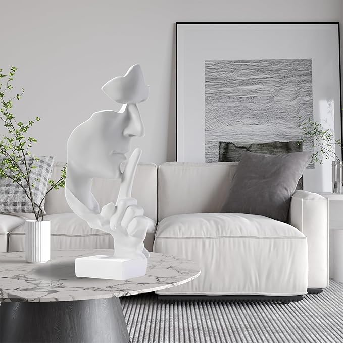 aboxoo Silence is Gold Thinker Statue, Modern and Simple Resin Things, Creative Abstract Figurine Sculptures for Entrance, Creative Room Home, Office Study, Piano Decor (Large White)