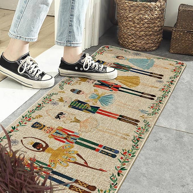 Artoid Mode Watercolor Nutcrackers Merry Christmas Doormat, Winter Home Decor Low-Profile Door Mat Floor Mat 17x47 Inch