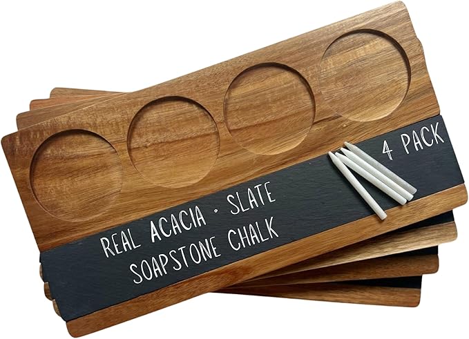 Wooden Flight Board Set – Wine, Beer, Whiskey, Mimosa, and Cocktail Tasting Tray – Acacia Wood Serving Board with Slate Chalkboard – Home Bar & Entertaining Gift (Set of 4, 16x8 inches)