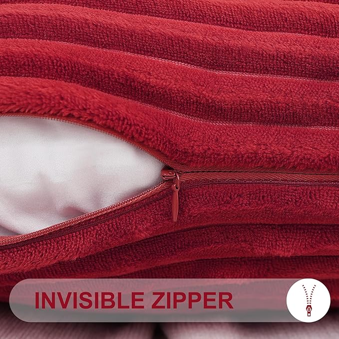 Simmore Decorative Throw Pillow Covers 16x16 Set of 2, Soft Natural Plush Flannel Double-Sided Fluffy Couch Pillow Covers for Sofa Living Room, Red
