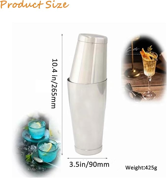 - Professional Boston Shaker: This attractive bar shaker set is suitable for professional bartenders and home bars, durable design, you can use it for a long time. You can also use this Boston shaker to shake or mix any mixed drinks like mojitos, margaritas, daiquiris, martinis, tequila, rum, vodka and liqueurs, etc