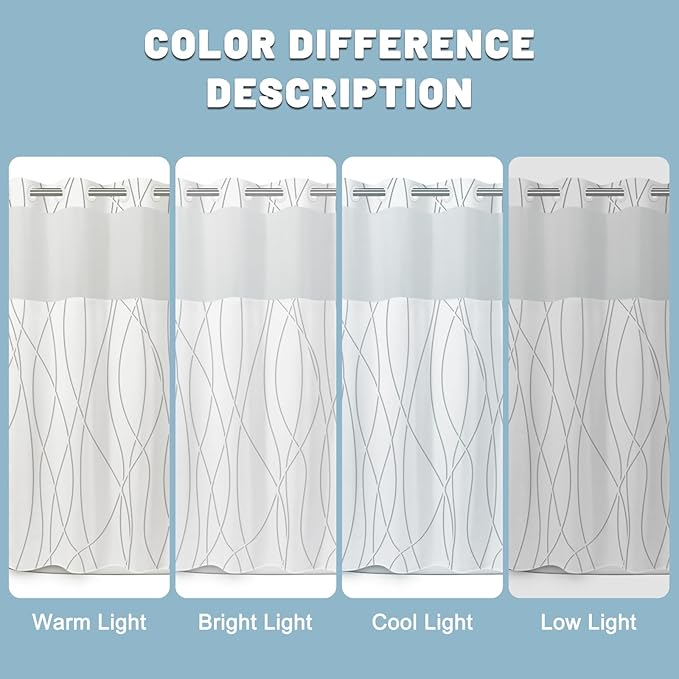 - Easy to Clean & Care: The 100% polyester shower curtain with snap-in liner is machine washable. Maximum ironing temperature: outer curtain 110°C/230°F, liner 70°C/160°F Note: Simple ironing can create a better visual experience