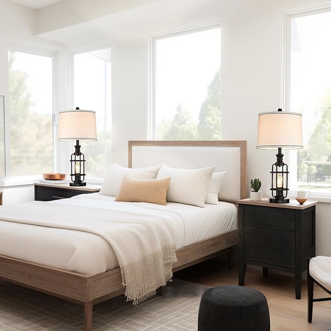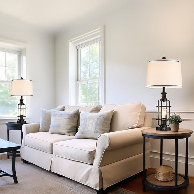 - Large Farmhouse Table Lamp Set of 2 :The bedside table lamps height is up to 26.3inch which will fit your grand house well. large-diameter lampshades make the glow soft so it can protect our eyes. Edison nightlight bulbs combine industrial and rustic styles, adding charm to your home.Perfect for a bedroom, office, foyer, family room, living room, nightstand, corner table, desk, coffee table and dining table.