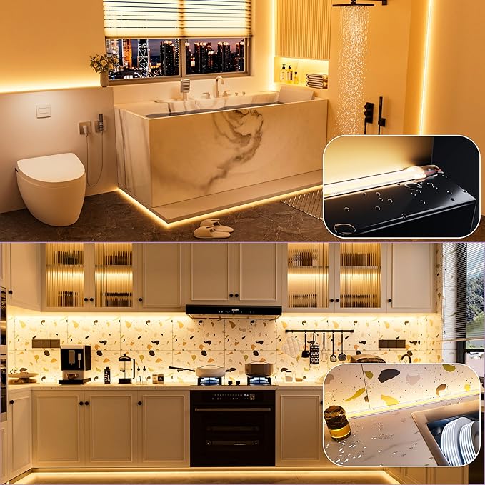 - 【IP65 Waterproof】Different from the common PAUTIX CCT COB LED strips, the IP65 COB LED strips have a plastic sleeve added to the outer layer to protect the COB strips from splashing water. Ideal for installation in bathrooms or scenes with slight moisture