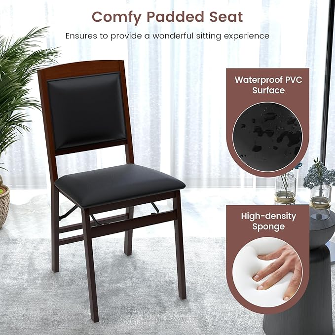 GOFLAME Folding Dining Chairs Set of 2, Foldable Chairs with PVC Padded Seat & High Backrest, Wooden Side Chairs, 2 Pack Dining Chairs for Living Room, Kitchen, Restaurant