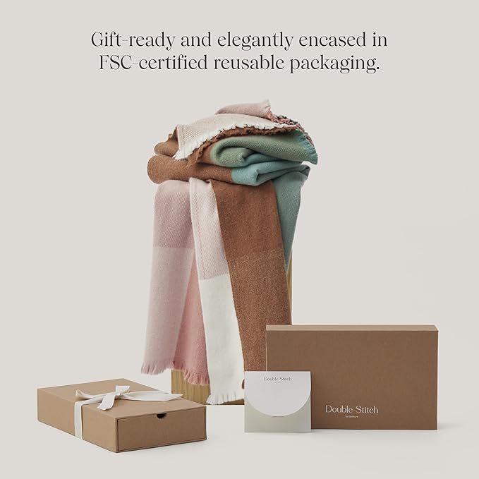 Double Stitch Alpaca Wool Throw Blanket - Warm, Soft Blanket for Couch, Luxury & Decorative Fleece Throw, Fall Plaid, Gift for Mother's Day, House Warming, 50" x 60", Harvest Multi