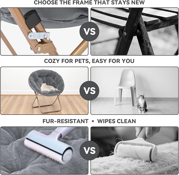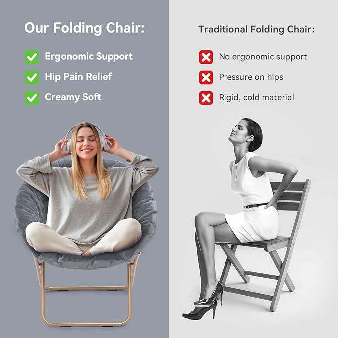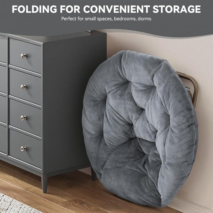 - Low Maintenance: Upholstered in super soft faux fur, this foldable saucer chair feels silky-soft while resisting wear. Simply spot clean to maintain its beauty. The sturdy metal construction ensures lasting comfort, whether used as a dorm chair or bedroom accent