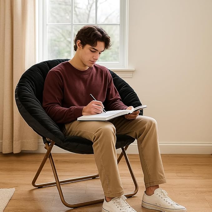 - Stylish and Practical: Elevate any space with our cozy saucer chair, available in chic colors to suit diverse tastes. Whether placed in a living room corner or dorm room, this round moon chair adds stylish charm. It also makes a thoughtful, practical gift for loved ones