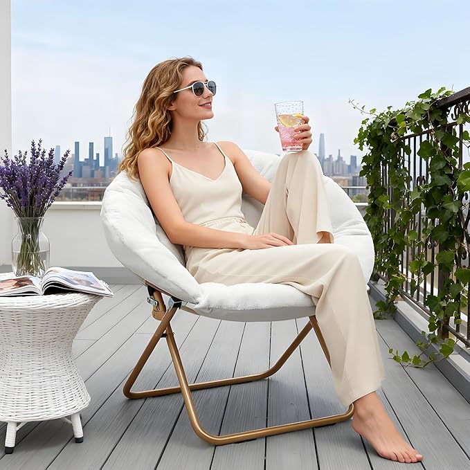 - Low Maintenance: Upholstered in super soft faux fur, this foldable saucer chair feels silky-soft while resisting wear. Simply spot clean to maintain its beauty. The sturdy metal construction ensures lasting comfort, whether used as a dorm chair or bedroom accent