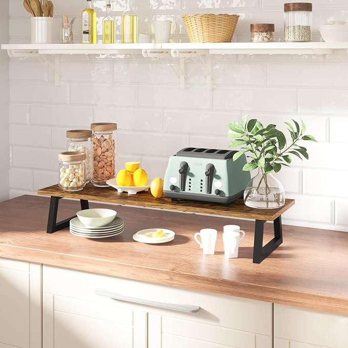 TEAMIX 31.5 inch Dual Monitor Riser for 2 Monitors, Long Monitor Stand Riser TV Stand Riser Monitor Stand for Desk Wood & Steel Desktop Riser Desk Organization Home Office