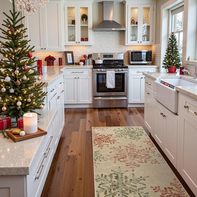 - 【High Traffic Rug]】The ultra-thin bathroom rug is sturdy and non-shedding, ensuring long-lasting appeal throughout the holidays. The low-file design effectively reduces the accumulation of food residues and hair and is suitable for areas with high daily traffic.