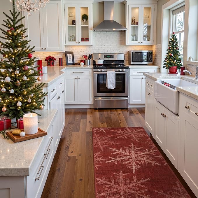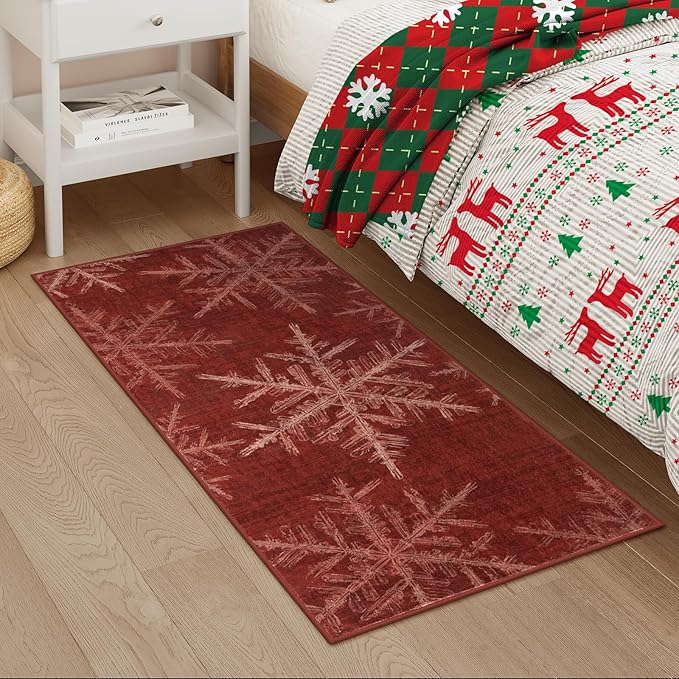 Lahome Snowflake Christmas Area Rug, 2x4 Washable Christmas Kitchen Rugs for Entryway Soft Doormat Indoor, Small Red Rug Non-Slip Holiday Decor Entryway Rugs for Bathroom Bedroom(2x4ft,Red)
