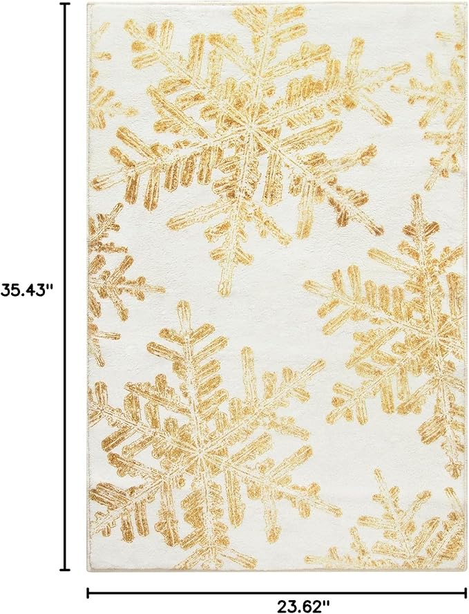 Lahome Snowflake Christmas Rugs for Entryway, 2x3 Christmas Kitchen Rugs Non Slip Merry Christmas Door Mat Indoor, Washable Small Rug Holiday Decor Carpet for Bathroom Entry Bedroom(2x3ft,Gold)