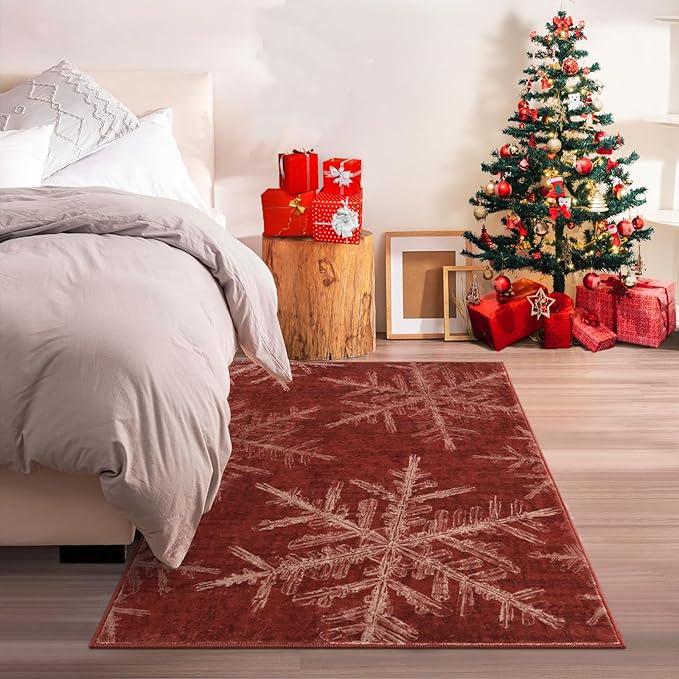 Lahome Snowflake Christmas Area Rugs, 4x6 Indoor Christmas Rug for Bedroom Non Slip Washable Living Room Rugs Holiday Decor Soft Red Rug Throw Carpet for Entryway Kitchen Dining Room(4'x 6',Red)