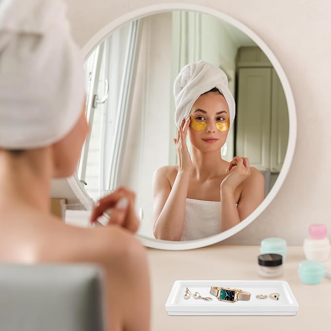 - Polished White Acacia Wood: Crafted from acacia wood and adorned with a charming white finish, this tray brings a luxurious and cozy feeling to any room. Whether it's the living room, kitchen, bedroom, or even the bathroom, this bathroom tray combines style and functionality seamlessly.