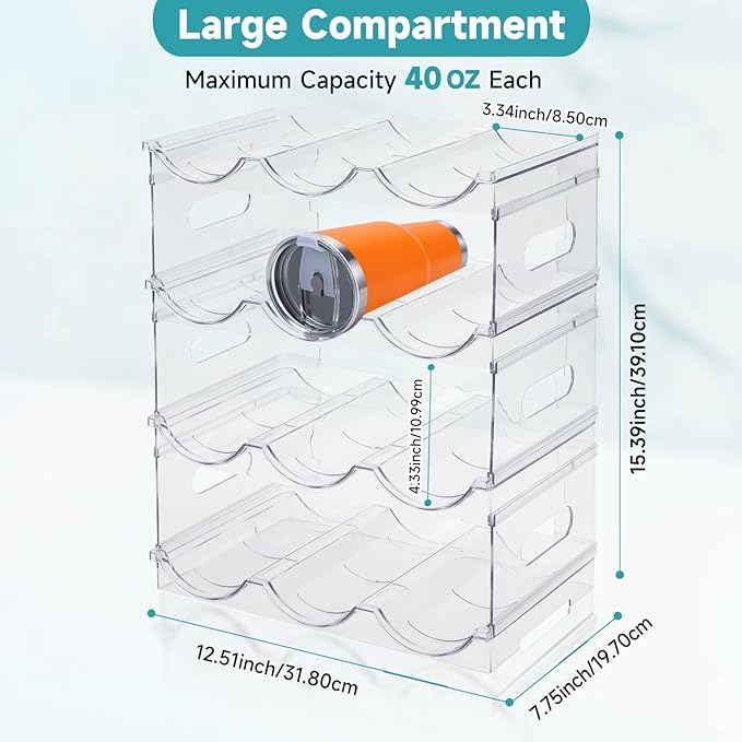 - 【STACKABLE & SNAP-ON DESIGN】 The 4 Packs water bottle organizer for cabinet features a stackable design, allowing the two layers of cup racks to be tightly stacked together, maximizing space-saving. The ridges on the shelves securely hold the water bottles in place, preventing them from rolling and making it easy to pull out or push in when needed.