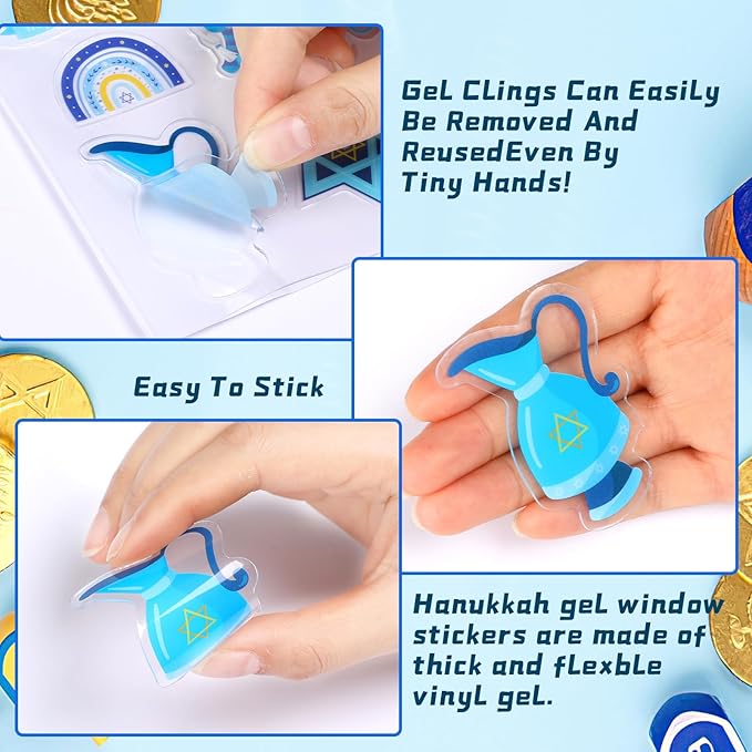 - Easy to Use: Simply attach the Hanukkah themed gel clings on the window for a decorative effect immediately. You can easily adjust the position of the window clings, create the festive atmosphere of happy Hanukkah. Chanukah thick window gel clings stickers are easy to remove and do not leave trace of glue on the window. Easier to clean than regular window stickers, saving you time and effort
