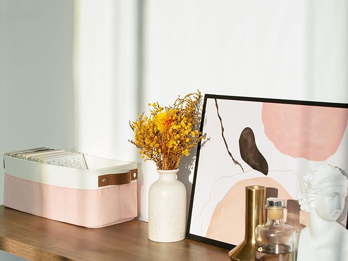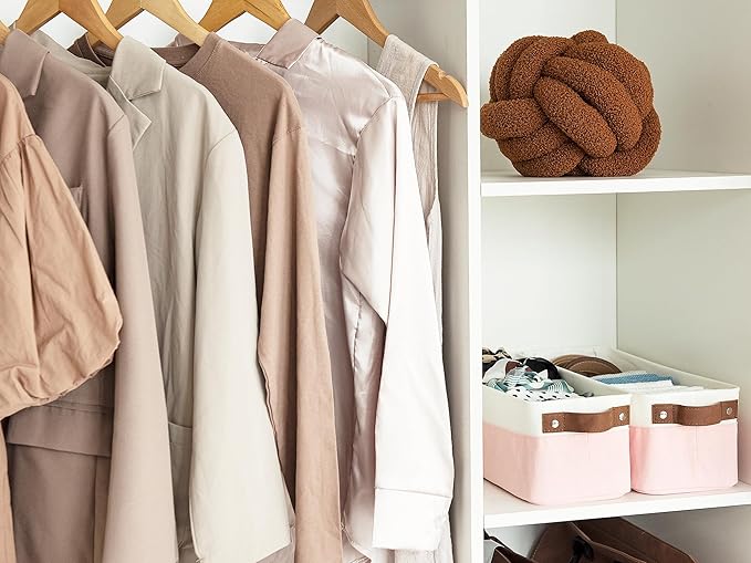 StorageWorks Narrow Storage Bins, Small Basket for Closet and Shelves, Fabric Organizer with Handles, Toilet Paper Storage, Pink and White, 2-Pack