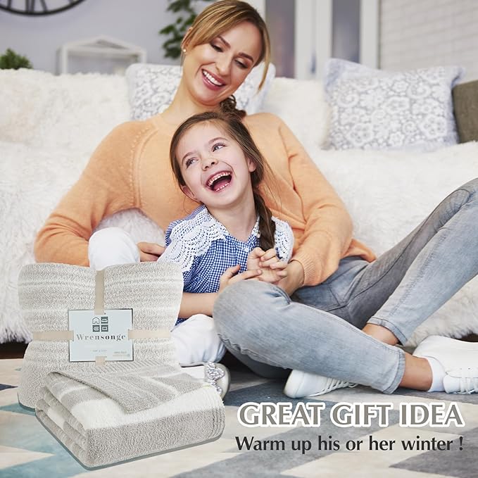 WRENGONGE Taupe Throw Blanket, 60x80 Soft Cozy Striped Throw Blankets for Couch, Sofa, Bed, Travel, Lightweight Fluffy Warm Plush Decorative Blankets for Women, Men,Kids Gift