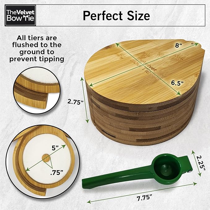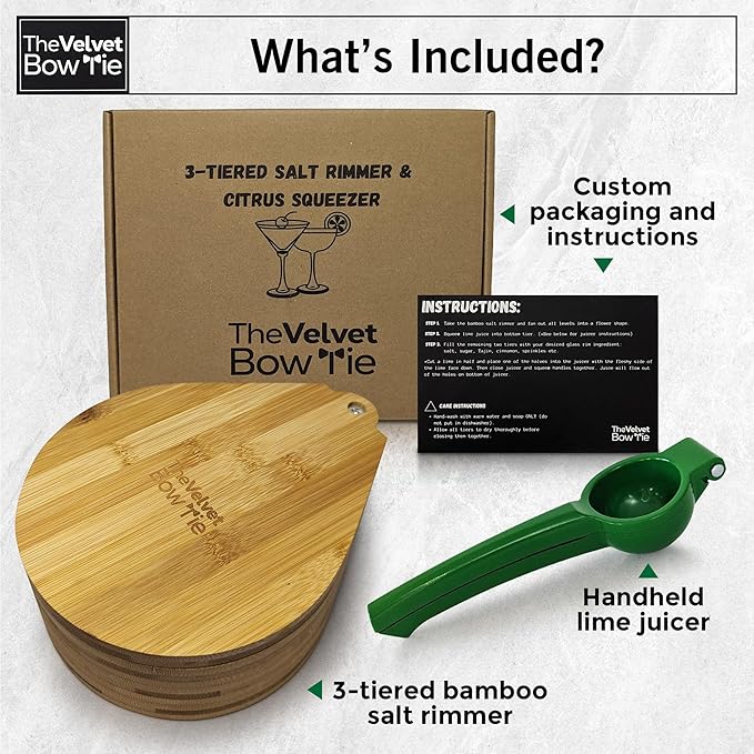 | Margarita Salt Rimmer Set | 3 Tiered Bamboo Glass Rimmer | Handheld Citrus Juicer | Sugar and Salt Rimmer for Cocktails | Cocktail Accessories for Drinks