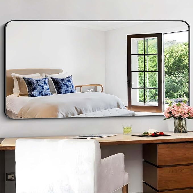 - ELEGANT ROUND CORNER DESIGN: This wall mounted rectangular mirror with rounded corners design that adds a soft aesthetic to the space. Designed minimalist modern style combine practicality and aesthetics.Make your whole room elegance and enhance your home decor.