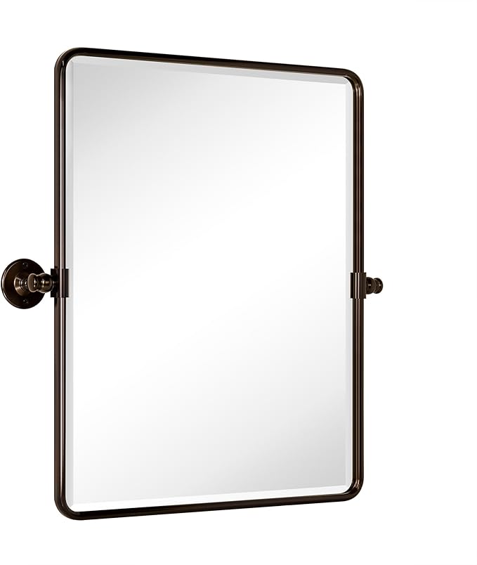 - Practical yet Beautiful Design: One of our best-selling rectangle pivot vintage bathroom mirror collection! Framed in premium metal for unrivaeld strength. Tilting up or down to adjust viewing angle for either standing or seated mirror use. Also this pivoting mirror is coming with an elegant and generous 3/4'' bevel. An easy fit in your bathroom aesthetics no matter it's Chic Modern or Rustic Farmhouse.