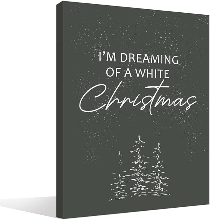 BIWSHA Christmas Dark Gray Wall Art, Winter Wall Print Decor, I'm Dreaming of White Christmas, Canvas Wall Art for Home Living Room Bedroom 1114 Inch