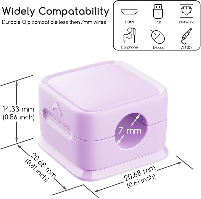 - 【WORK FOR ALL KINDS OF CABLE】 Suitable for holding most desktop cables less than 7 mm (0.27 inches). This desktop cable management can be used for iPhone charger cables, USB cables, network cables, kitchen appliance power cord and so on.